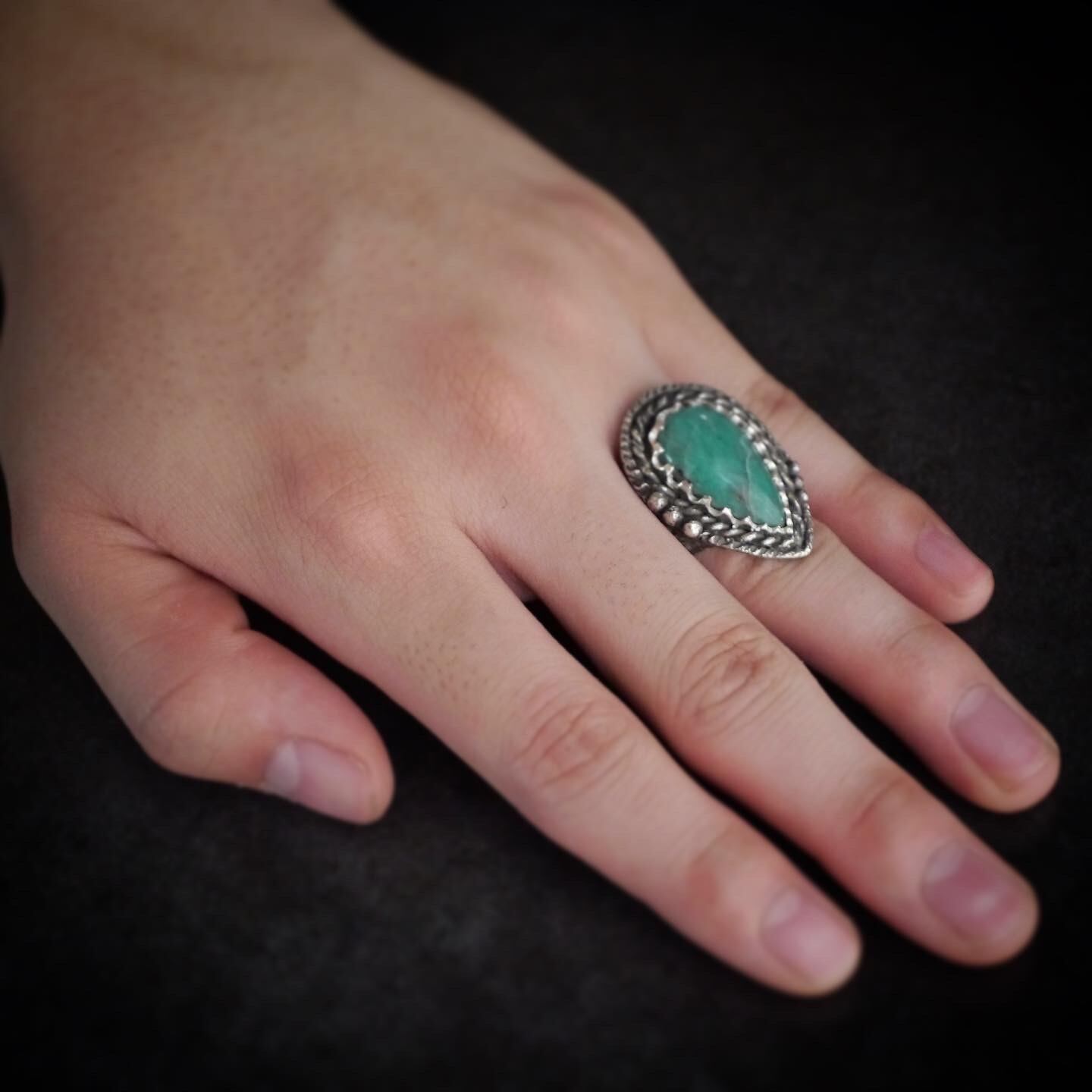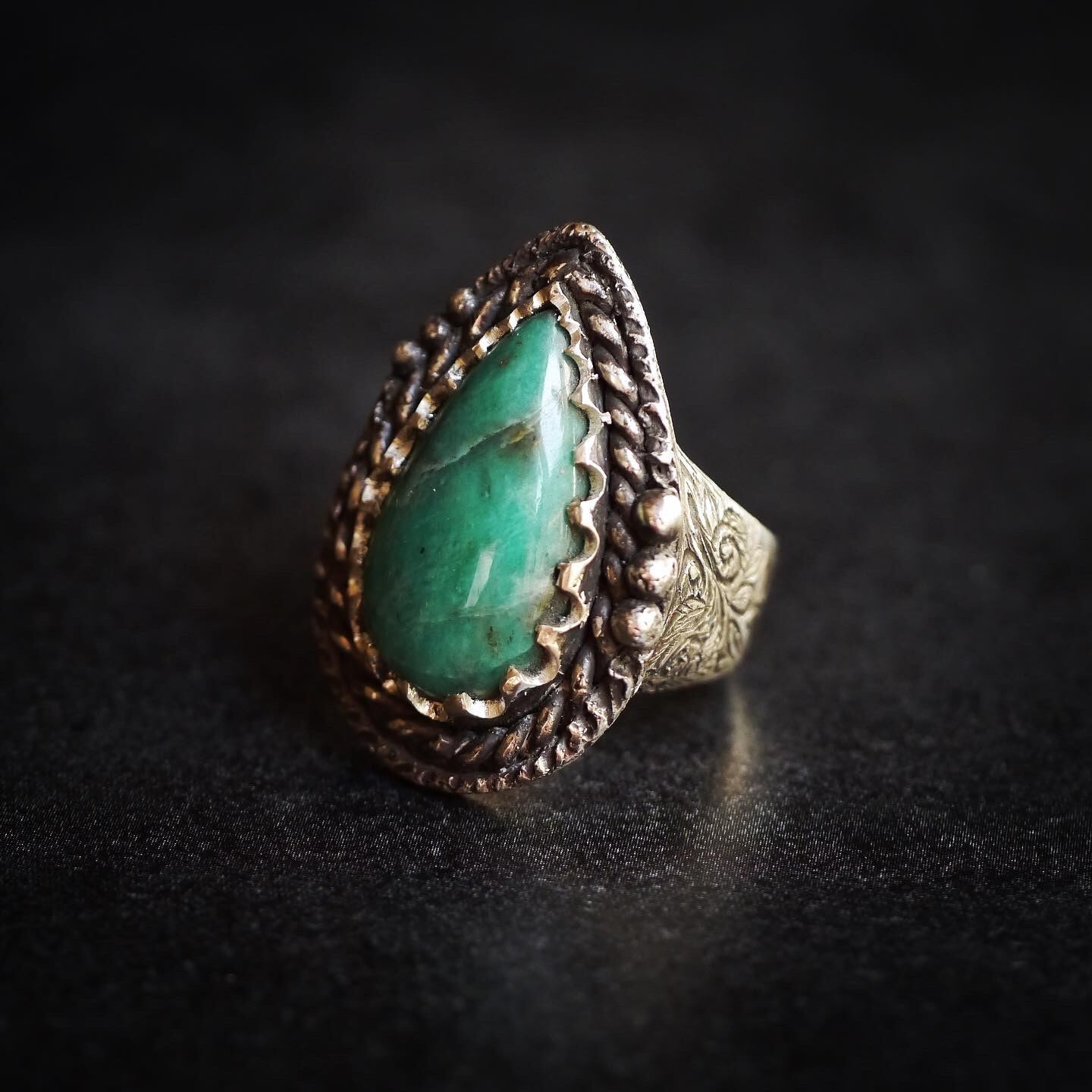 NEW NATIVE エメラルドリングは重厚感のあるエメラルドの原石を使用しています。