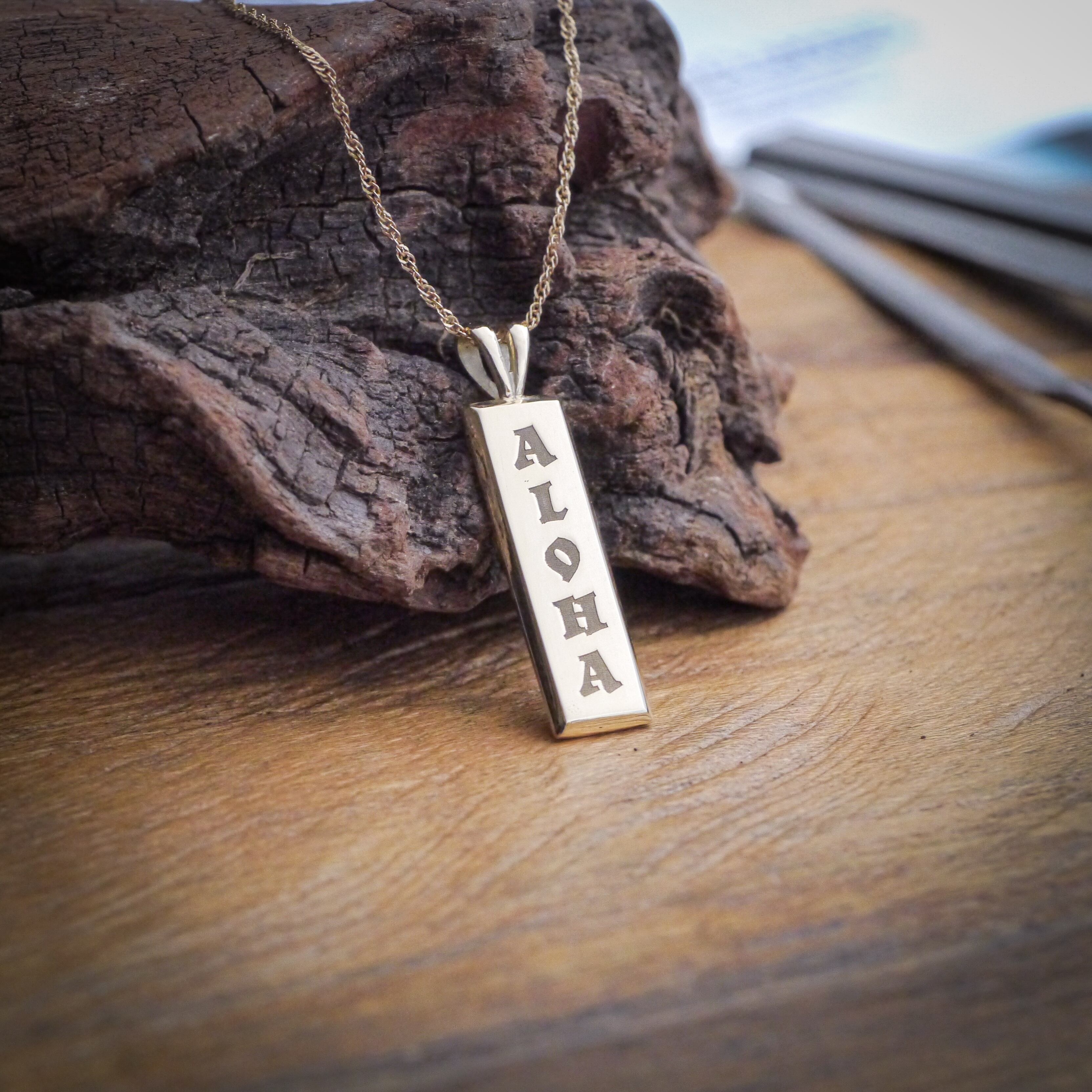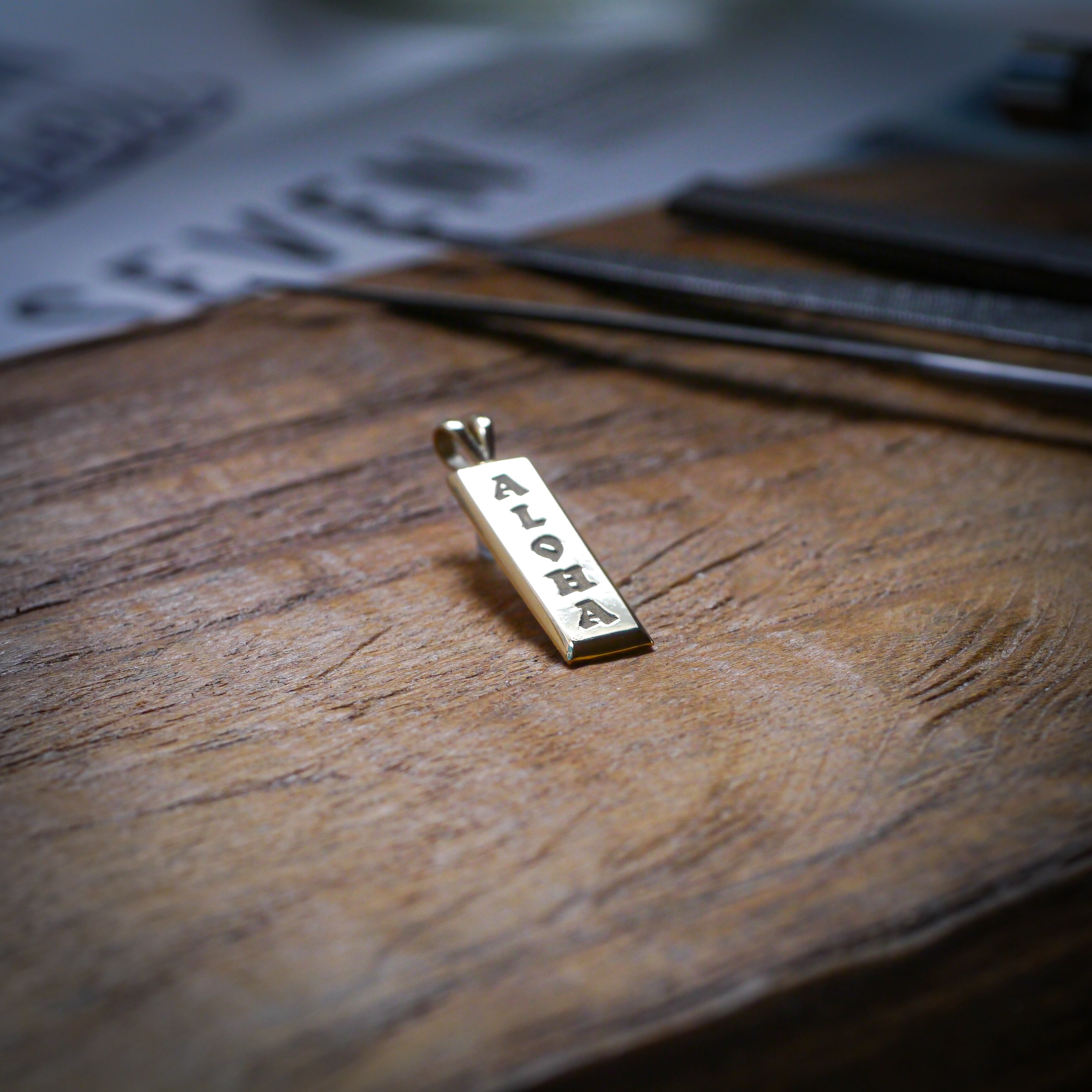 インゴッドのようなプレートにALOHAの刻印を入れた